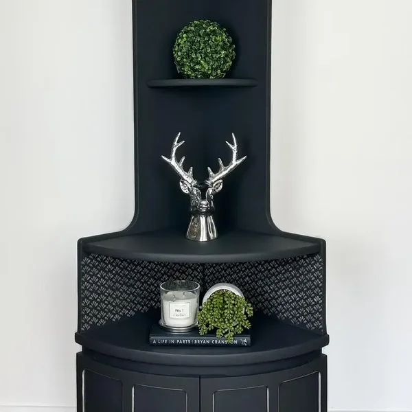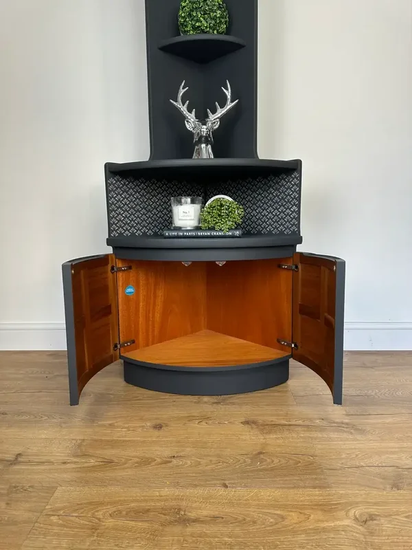 Dark Grey Stunning Nathan Corner Cabinet Shelving Cupboard Drinks Cabinet Unit Solid Wood Storage